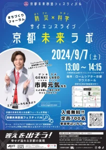 9月7日13:00のフォーラムにてGENKI LABO(ゲンキラボ)市岡元気先生よる防災×科学のサイエンスライブを開催します!ユーチューブ登録者数100万人超、子供たちにも大人気の元気先生のサイエンスライブにご家族・ご友人と一緒にぜひお越しください!